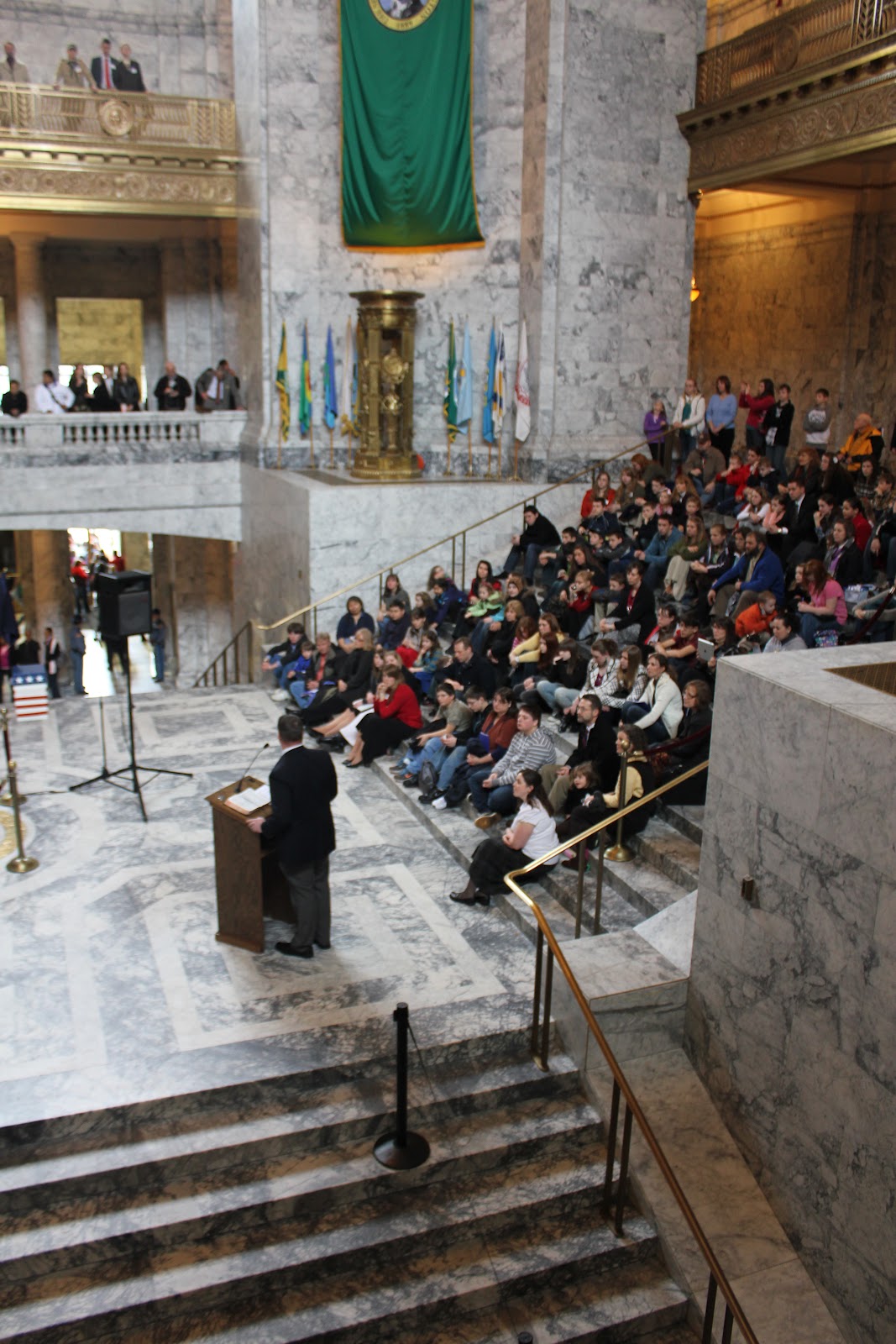 Continuing with the catching up theme, the second week of February flew by with extreme busyness! The first part of the week was spent in prepping for the days to follow and recovering from my birthday get away. Early Wednesday morning, the Houston family rolled out of the sack, got dressed, loaded into the van, and headed down to our state's capitol, Olympia. Craig was asked to speak for the Christian Homeschooler's day at the Capitol. What an opportunity! There were several hundred homeschooling families that attend every year. These families bring home made apple pies and the children, 12 and older, deliver them to our Representatives and Senators. My children's group was even selected to deliver pies to the Governor and the Lieutenant Governor! Craig spoke on being "salt and light" as Christian's in our nation. Little did we know beforehand, but the House chose that particular day to vote on the bill for same sex marriage. We had the opportunity to truly be salt and light that day! Craig also was asked to give a short speech in the Rotunda, under the dome. This is a very public part of the Capitol building where onlookers stopped to listen to what was going on. He was asked to pray over Representatives and Senators that came to address our group. It was a full day that ended with registering for a speech tournament that my four oldest children participated in.....